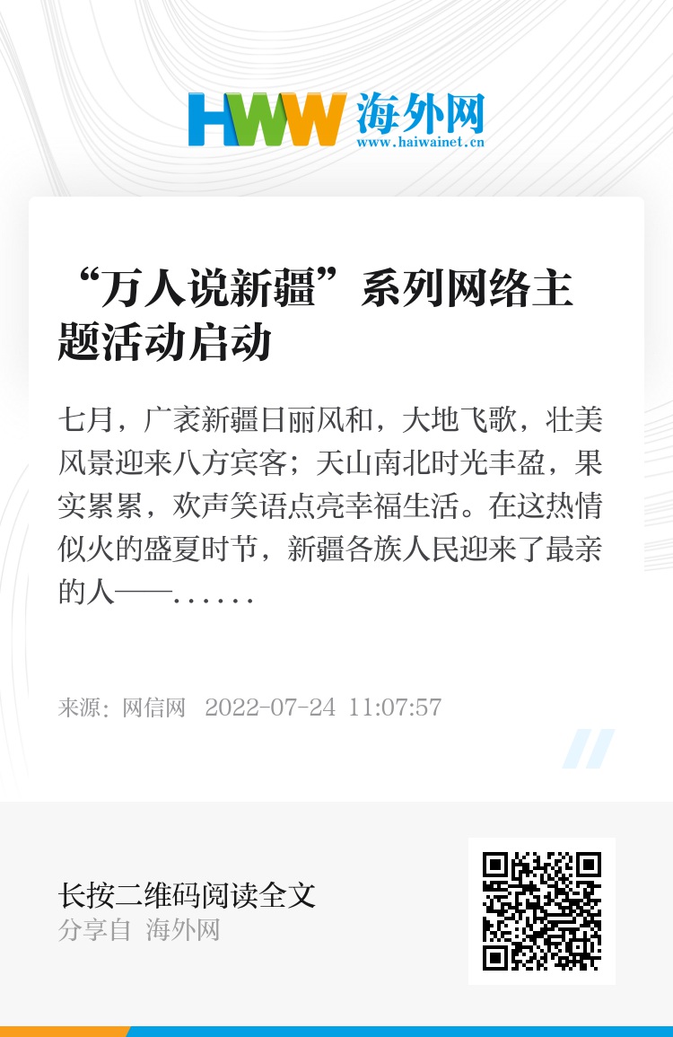 2022年7月23日,“万人说新疆”系列网络主题活动启动仪式在乌鲁木齐举行。