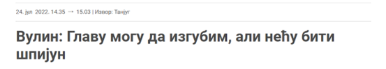 尽管正遭到施压,但RT称,武林说他拒绝以任何方式与外国间谍合作。“除了塞尔维亚人民和塞尔维亚国家,我没有为任何人工作过,将来也不会为任何人工作,除了所有塞尔维亚人民的总统亚历山大·武契奇,我不会完全忠诚于任何人。”武林说。