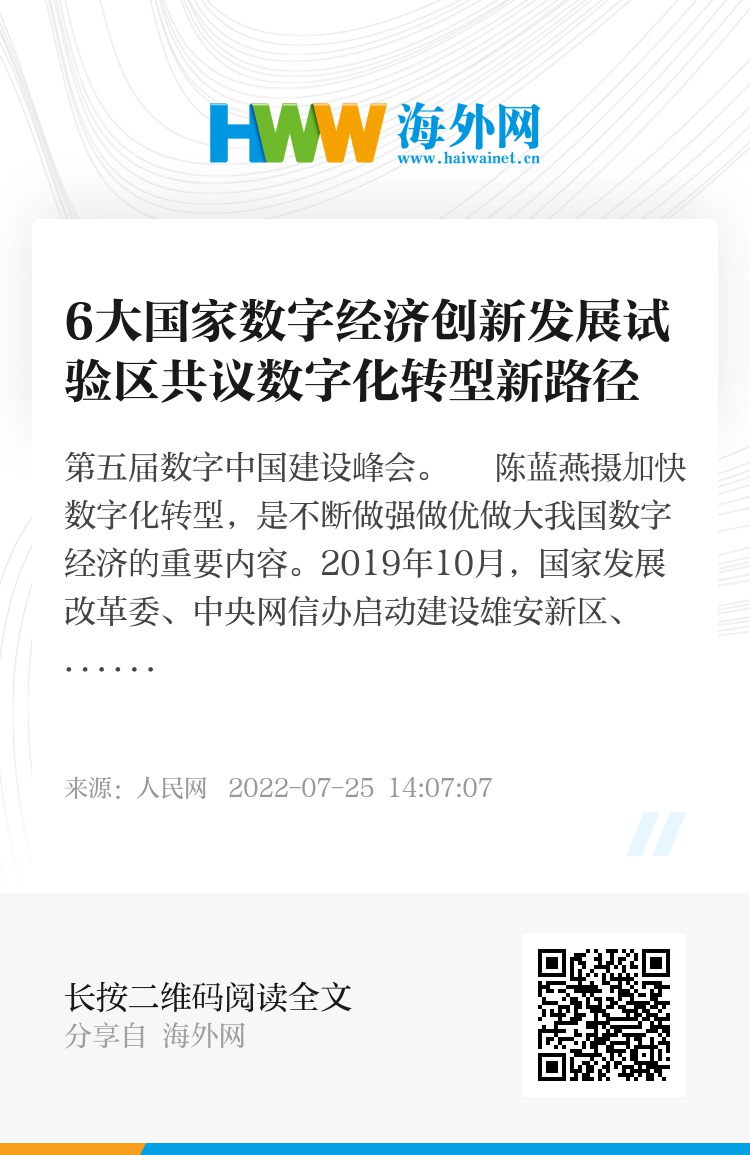 2019年10月,国家发展改革委、中央网信办启动建设雄安新区、浙江省、福建省、广东省、重庆市、四川省等6个国家数字经济创新发展试验区。