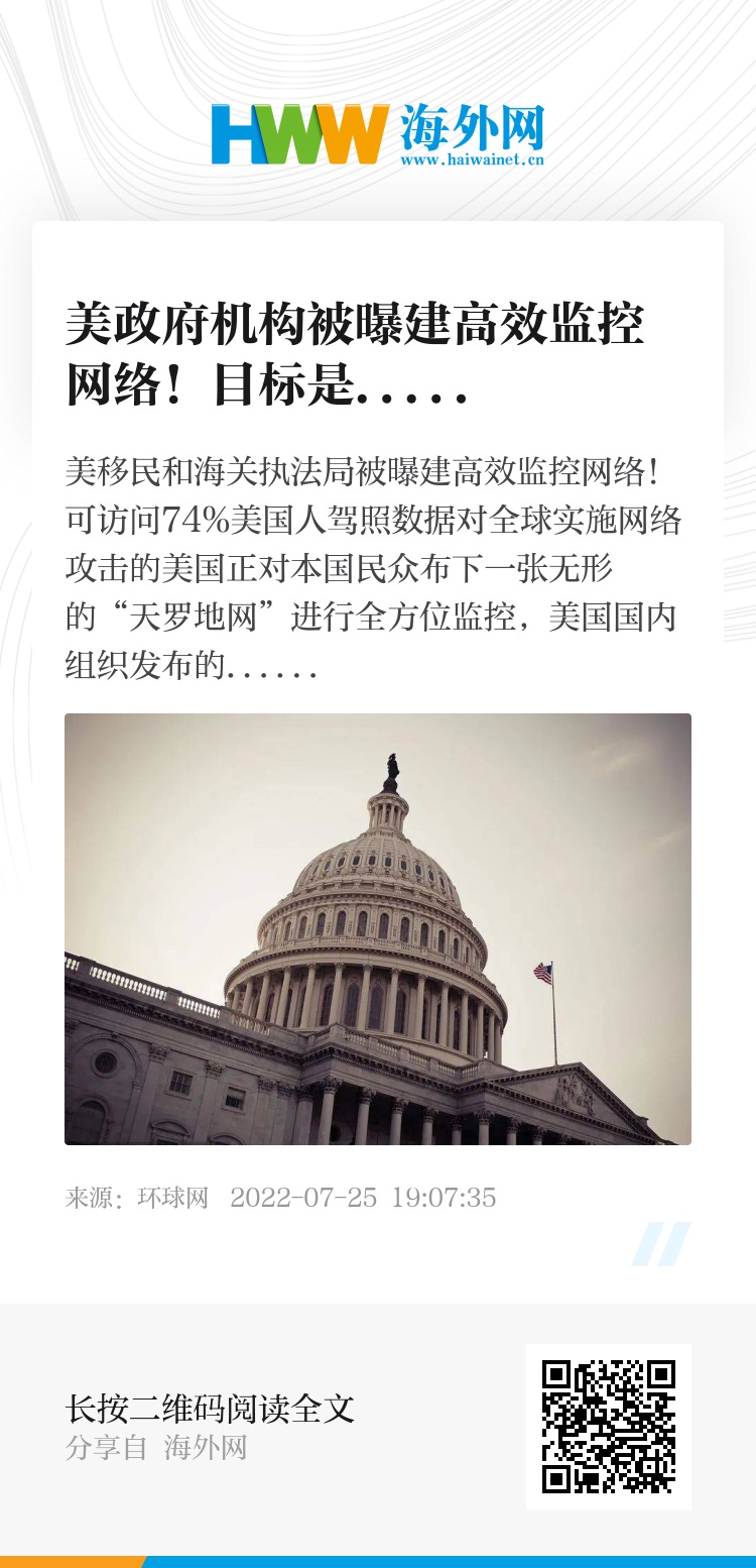 这位人士表示,美政府以“国家安全”的名义无视规则、突破底线的“双标”霸权行径非一日之功,在商业利益和“国家安全”这两大驱动力之下,ICE已经构建成型的庞大监控网络何时能被有效控制还未可知,类似ICE这样公然越权滥用公民个人隐私数据的“隐形”政府机构到底还有多少也是一个“细思极恐”的问题,“对内虎视眈眈,长期以非手段监控美国公民,对外长臂管辖,辅以多方窃密和网络攻击,美政府编造的‘国家安全’种种说辞正一个接着一个被世人识破,成为美国谋求霸权最显著的政治注脚。”