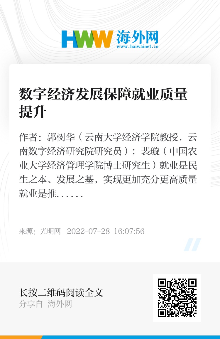 数字经济助力破除高质量就业的制约瓶颈