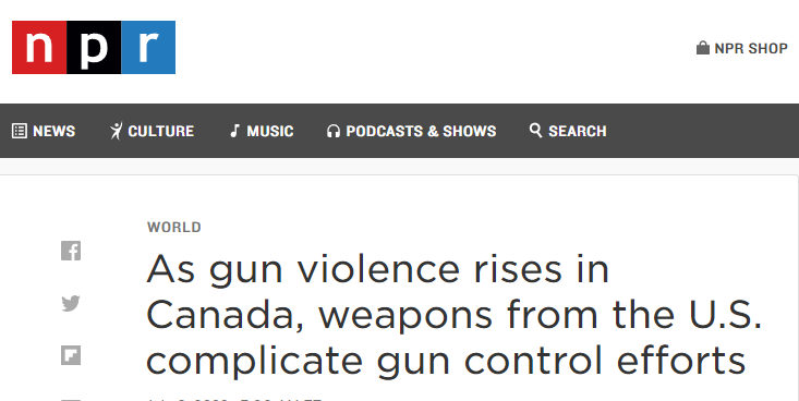 “美国枪支不仅杀害美国人,同样也杀害加拿大人。然而,尽管如此,我们还是可以做一些事情,而这正是我们必须关注的,”加拿大非营利组织枪支控制联盟(Coalition for Gun Control)主席温迪·库克(Wendy Cukier)说。该联盟一直在游说立法,包括禁止持有手枪。