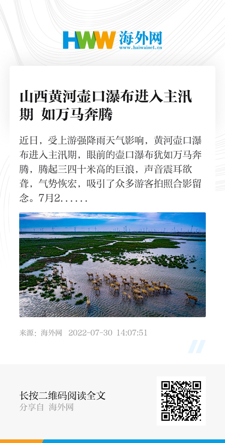 近日,受上游强降雨天气影响,黄河壶口瀑布进入主汛期,眼前的壶口瀑布犹如万马奔腾,腾起三四十米高的巨浪,声音震耳欲聋,气势恢宏,吸引了众多游客拍照合影留念。7月27日,游客在吉县黄河壶口瀑布旅游区游览观瀑。图片来源:视觉中国