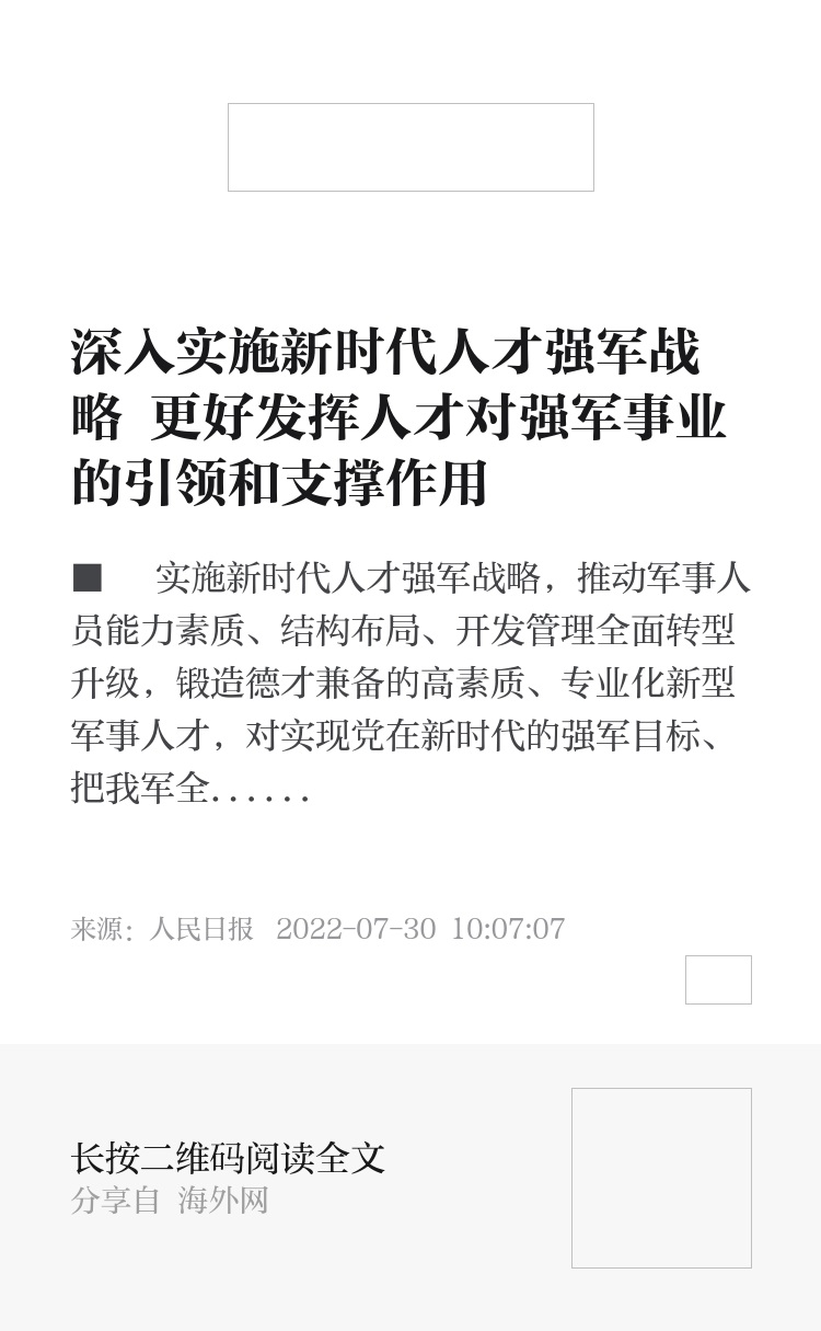 ■ 未来5年,我军建设的中心任务就是实现建军一百年奋斗目标。要增强忧患意识、责任意识、进取意识,全面加强我军人才工作