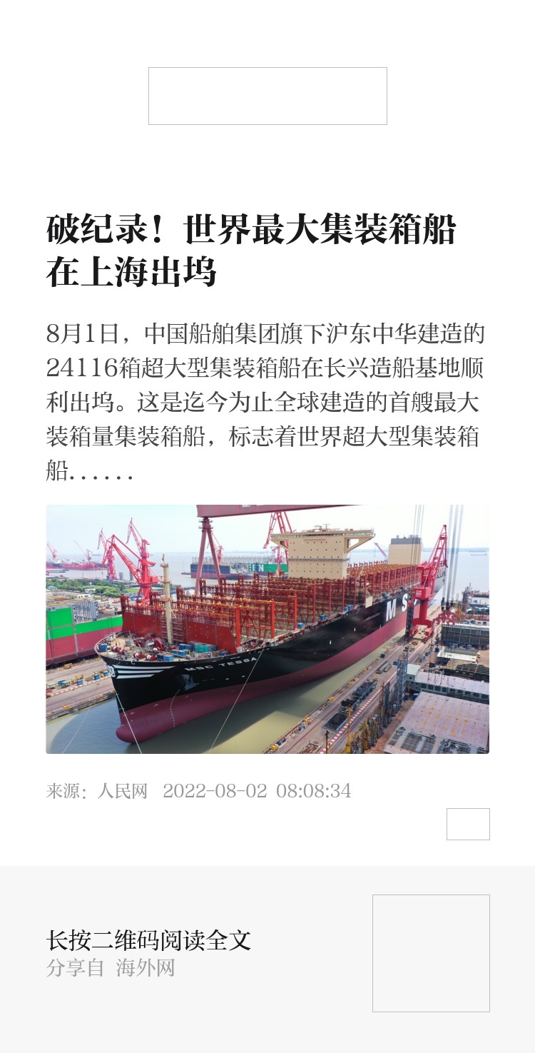 8月1日,中国船舶集团旗下沪东中华建造的24116箱超大型集装箱船在长兴造船基地顺利出坞。这是迄今为止全球建造的首艘最大装箱量集装箱船,标志着世界超大型集装箱船建造进入中国船舶引领的新纪元。张良摄