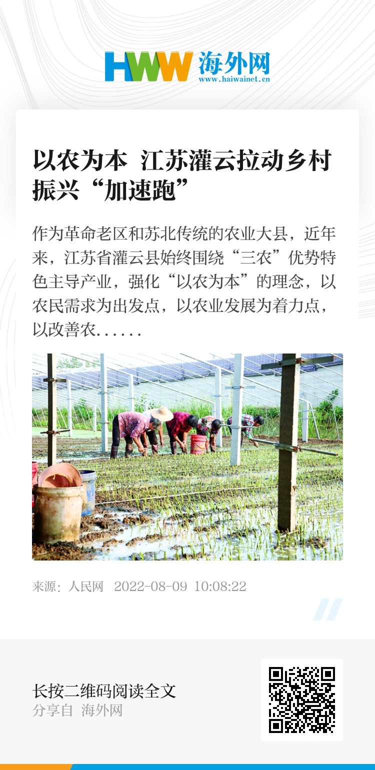 作为革命老区和苏北传统的农业大县,近年来,江苏省灌云县始终围绕“三农”优势特色主导产业,强化“以农为本”的理念,以农民需求为出发点,以农业发展为着力点,以改善农村面貌为落脚点,让农业成为有奔头的产业,让农民成为有吸引力的职业,让农村成为安居乐业的美丽家园。