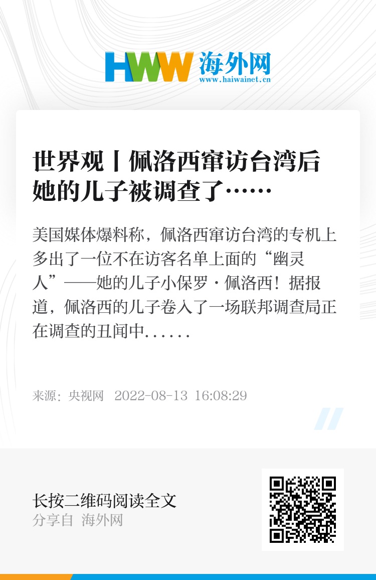 美国媒体爆料称,佩洛西窜访台湾的专机上多出了一位不在访客名单上面的“幽灵人”——她的儿子小保罗·佩洛西!