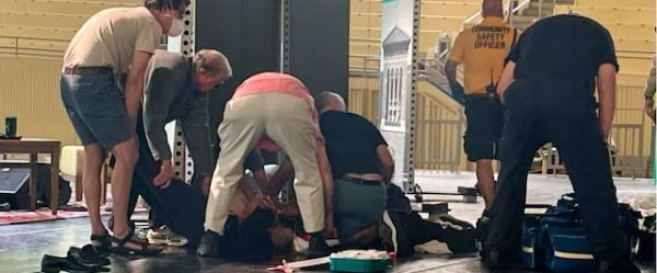 在纽约遇袭后,现场工作人员紧急救治拉什迪