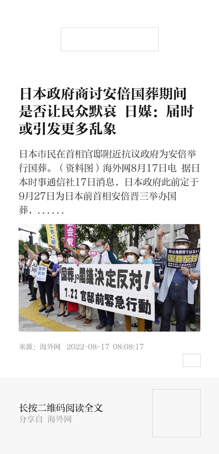 今年7月,安倍的守夜及葬礼仪式期间,日本部分教委曾安排当地学校下半旗,招致民众反感,称“政府将政治价值观强加到我们头上”。近日,有日本民众通过游行、起诉政府等方式反对给安倍办国葬。日本时事通信社认为,安倍国葬仪式届时或引发更多社会乱象。(海外网 王珊宁)