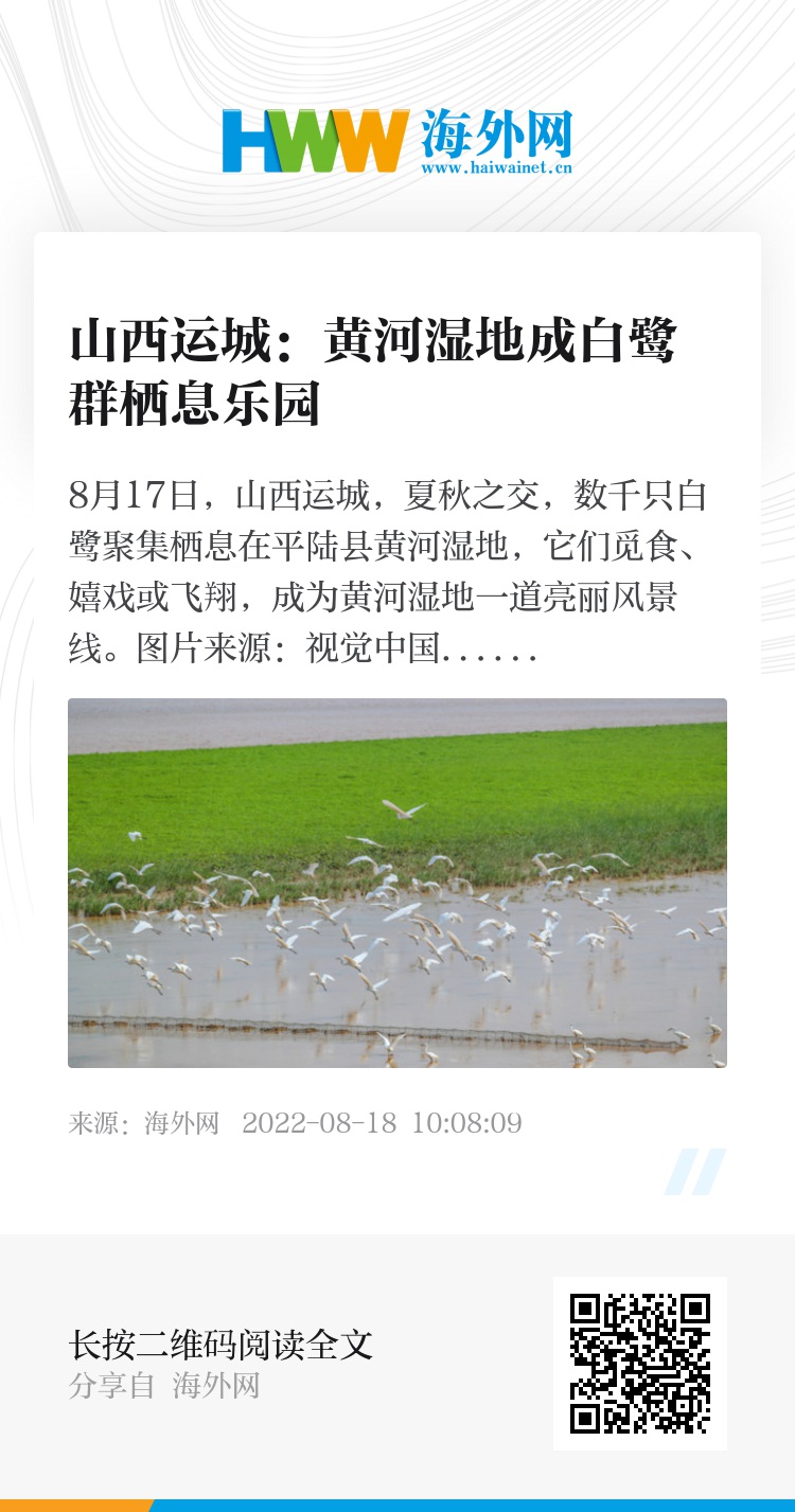 32472599,.山西运城:黄河湿地成白鹭群栖息乐园,.2022-08-18 10:52:09,.204524,.庄鹏泽、刘素素