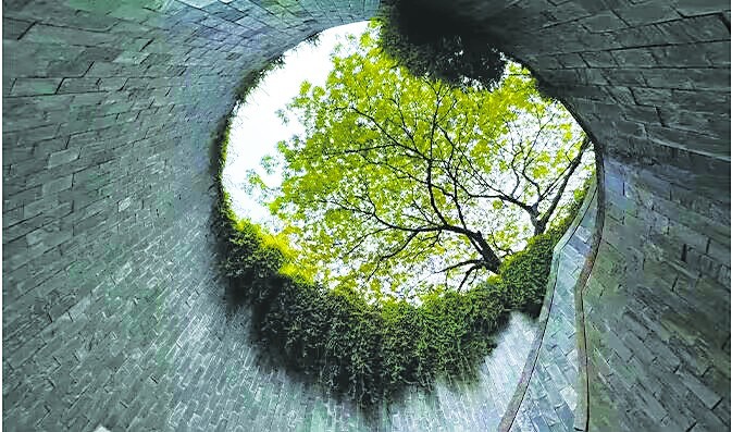 福康宁山上的这个网红“树洞”还有一个高大上的名字——“龙之穴”。在这个堪称公园最惊艳的地方,游客可以坐在洞中的阶梯上拍照,从洞口往下拍,能拍到神秘感十足、不断延伸的螺旋阶梯,从下往上拍必须用广角镜头,可以拍到洞口附近历史悠久的老树,茂密枝叶铺满天井的天空,井边挂满绿色墙蔓,同时树的影子映在“树洞”的墙上,如同爱丽丝梦游仙境一般。除了这两种常见的拍摄角度,隧道一侧的小出口也有高大的墙壁,也适合拍照。不过,游客坐在扶梯的墙上需要点胆量,恐高的人可能会害怕。当然,一些摄影达人能想出其他的角度,拍摄出的画面令人称奇。