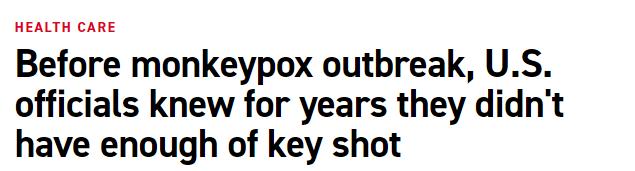 消息人士还表示,美国国家战略储备应该有1.2剂Jynneos猴痘疫苗,足够给6000万人接种。然而,美国在2019年之前只有2000万剂,2020年也仅购买了100多万剂来补充过期疫苗。
