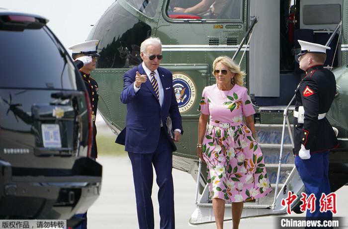 资料图:2022年8月10日,美国总统拜登和第一夫人吉尔·拜登抵达南卡罗来纳州,正式开启夏季休假。