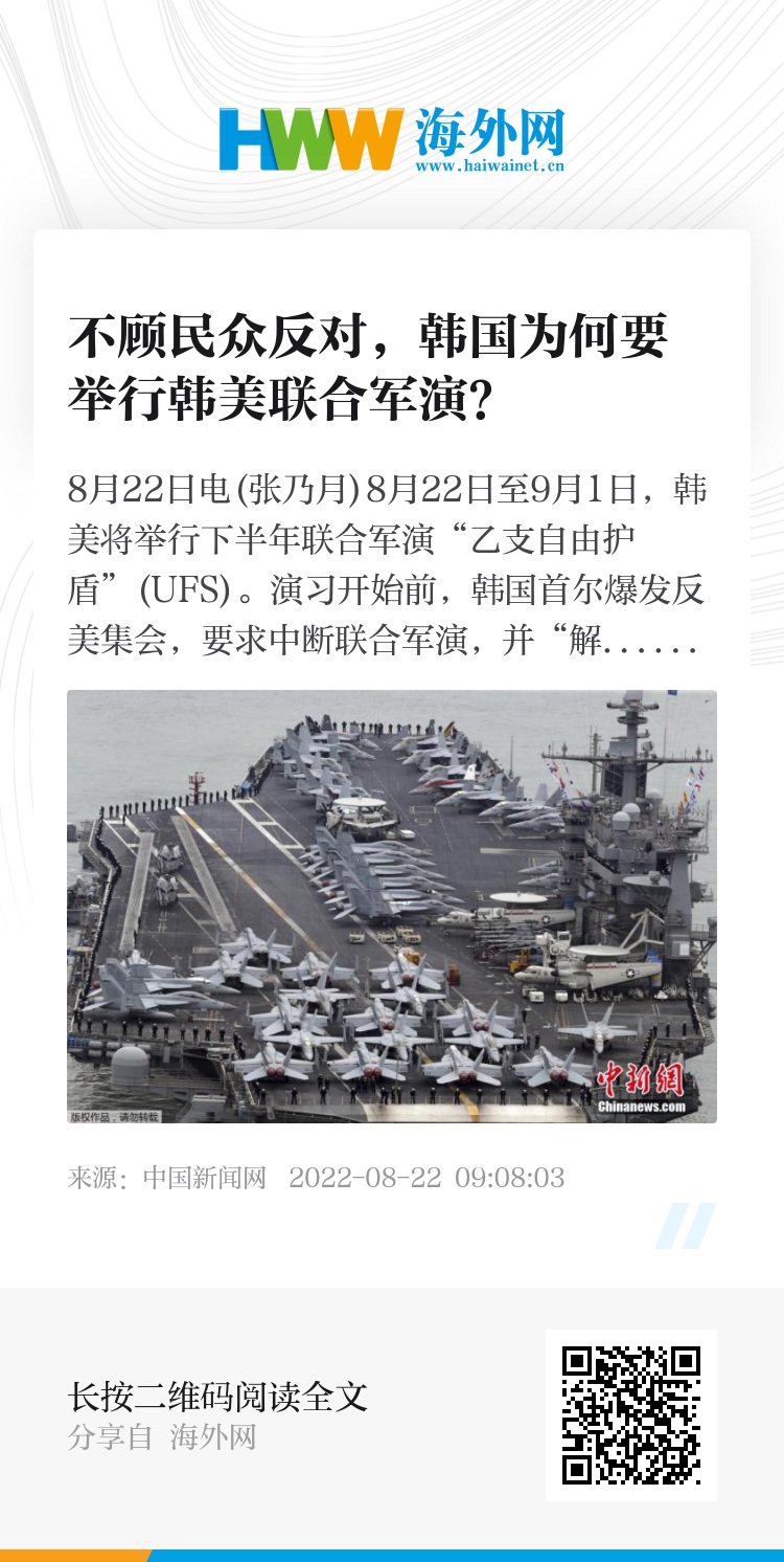 中新网8月22日电(张乃月)8月22日至9月1日,韩美将举行下半年联合军演“乙支自由护盾”(UFS)。演习开始前,韩国首尔爆发反美集会,要求中断联合军演,并“解散韩美同盟,撤走驻韩美军”。