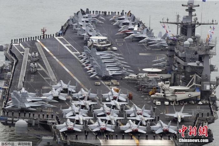 资料图:2016年3月13日消息,美国“斯坦尼斯号”核动力航母抵韩参加韩美军演。
