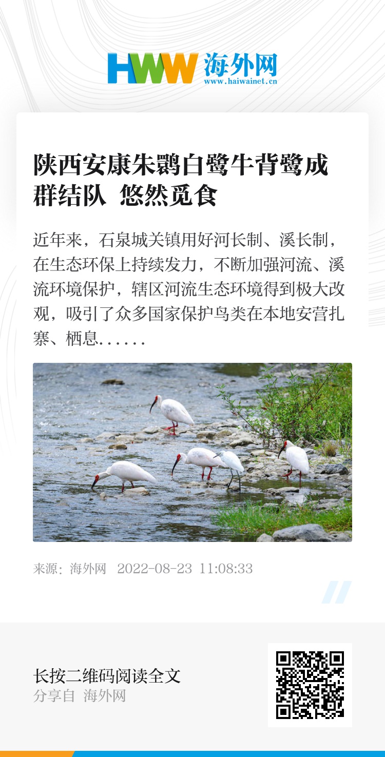 近年来,石泉城关镇用好河长制、溪长制,在生态环保上持续发力,不断加强河流、溪流环境保护,辖区河流生态环境得到极大改观,吸引了众多国家保护鸟类在本地安营扎寨、栖息繁衍。8月23日,陕西安康,石泉县城关镇饶峰河河畔,数十只鹭鸟成群结队,在河边嬉戏玩耍,悠然觅食。图片来源:视觉中国