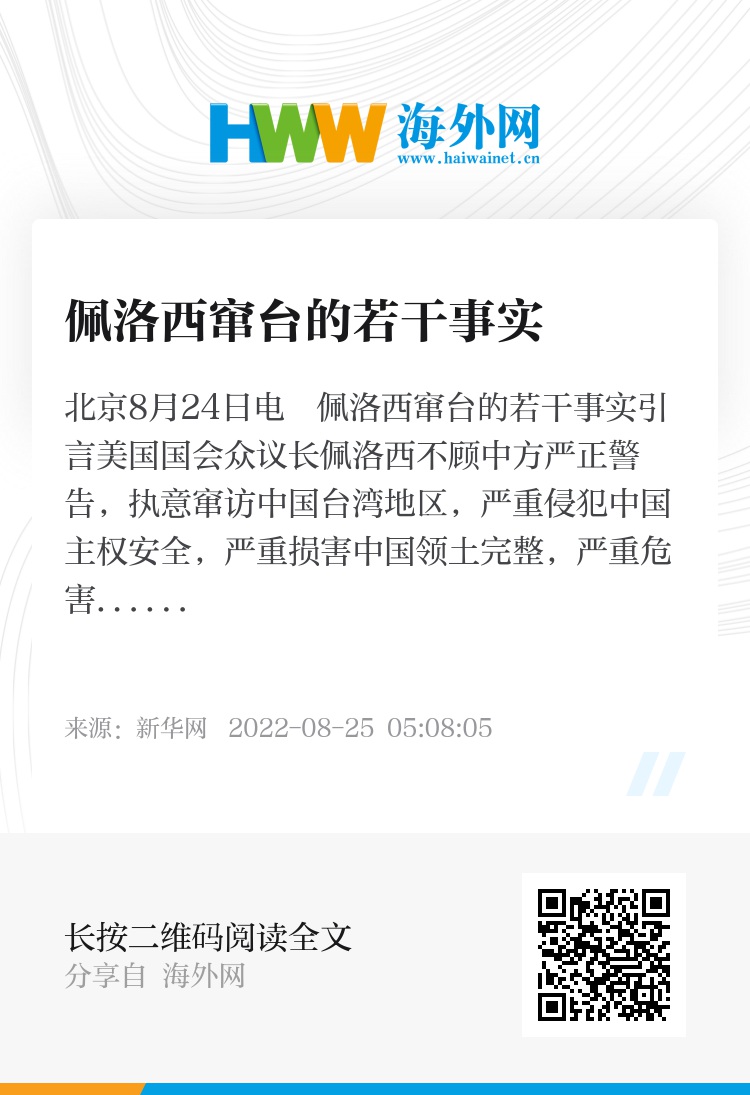 新华社北京8月24日电 佩洛西窜台的若干事实