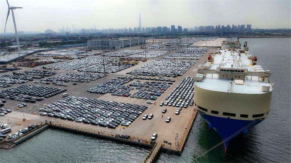 环视占地19万平米的环球滚装码头堆场,远处的停车楼是目前北方最大的单体封闭式立体停车楼,占地面积3.3万平米,商品车堆存量可达到3500台。近年来,环球滚装码头公司紧紧抓住天津口岸独特的优势,积极搭建以港口为中心的三方交流平台,主动服务京津冀协同发展和共建“一带一路”。一方面,通过不断优化内外循环航线网络,服务汽车产业海上门户枢纽地位得到巩固和提升;另一方面,逐步构建起汽车服务产品集群,国际化汽车流通合作新平台建设初见成效。天津港汽车板块外贸出口量和进口量都在逐年提高,这里已经成为京津冀地区汽车内外贸中转的重要枢纽。