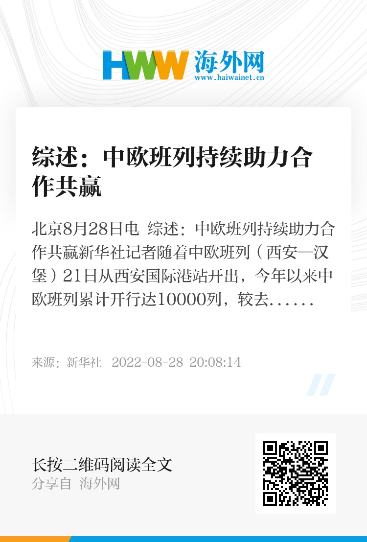 新华社北京8月28日电 综述:中欧班列持续助力合作共赢