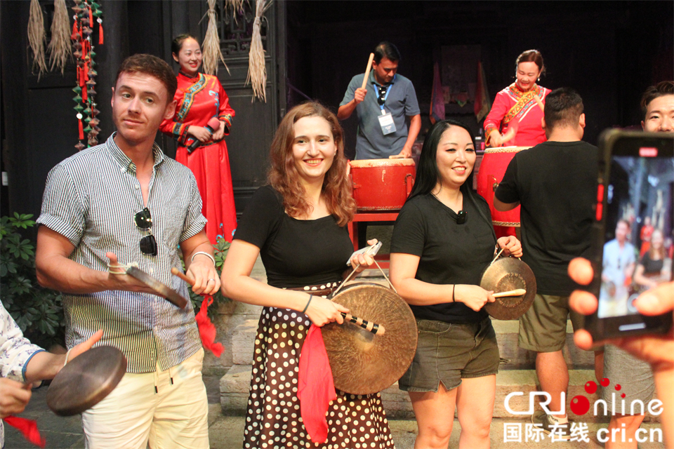 土家族民俗歌舞秀《花咚咚的姐》展示了土家族原生态的山歌、长阳南曲,演绎了土家族民俗风情。被誉为“巴楚古音活化石”的兴山民歌余音绕梁、令人回味,兴山地花鼓表演妙趣横生、诙谐幽默,外国网红感受到中国传统音乐、民间舞蹈的无穷魅力。