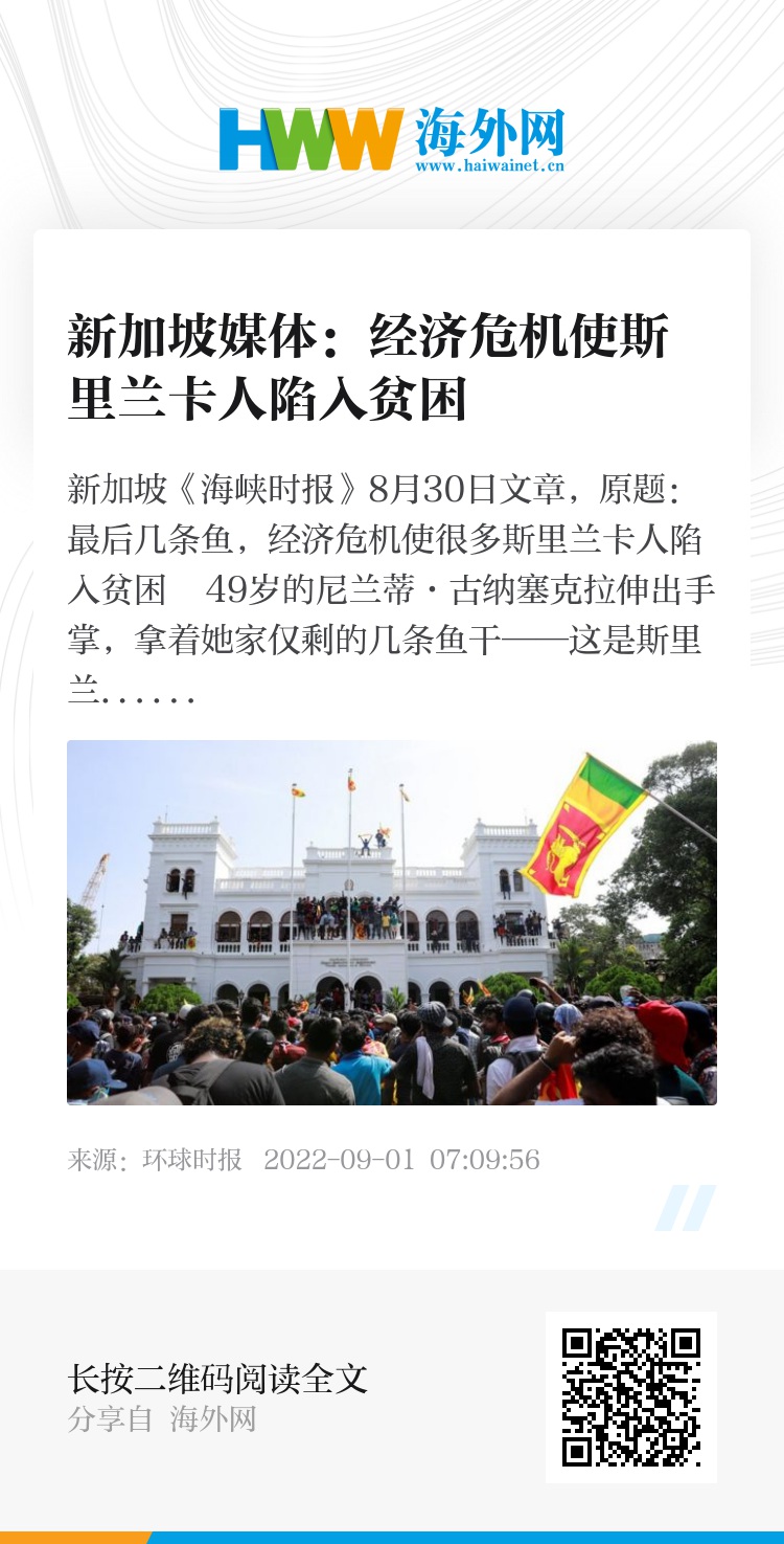 新加坡《海峡时报》8月30日文章,原题:最后几条鱼,经济危机使很多斯里兰卡人陷入贫困