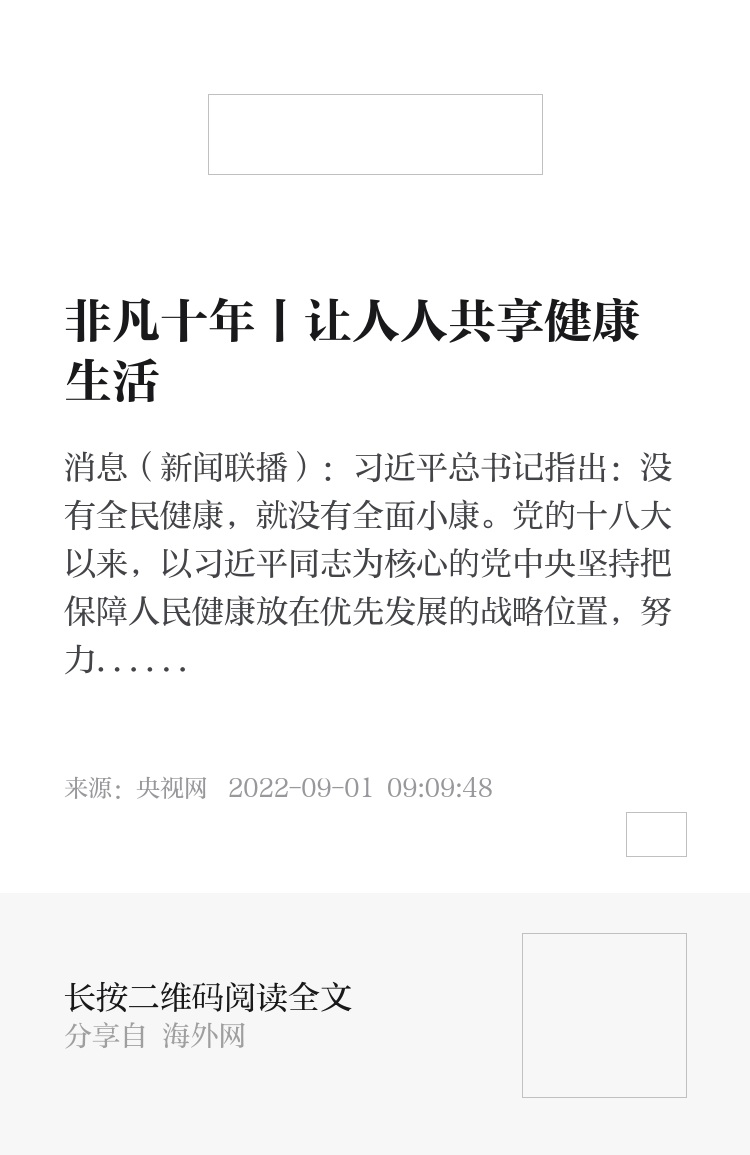 央视网消息(新闻联播):习近平总书记指出:没有全民健康,就没有全面小康。党的十八大以来,以习近平同志为核心的党中央坚持把保障人民健康放在优先发展的战略位置,努力全方位全周期保障人民健康,加快优质医疗资源扩容和区域均衡布局。人民健康状况持续改善,健康中国建设迈出坚实步伐。