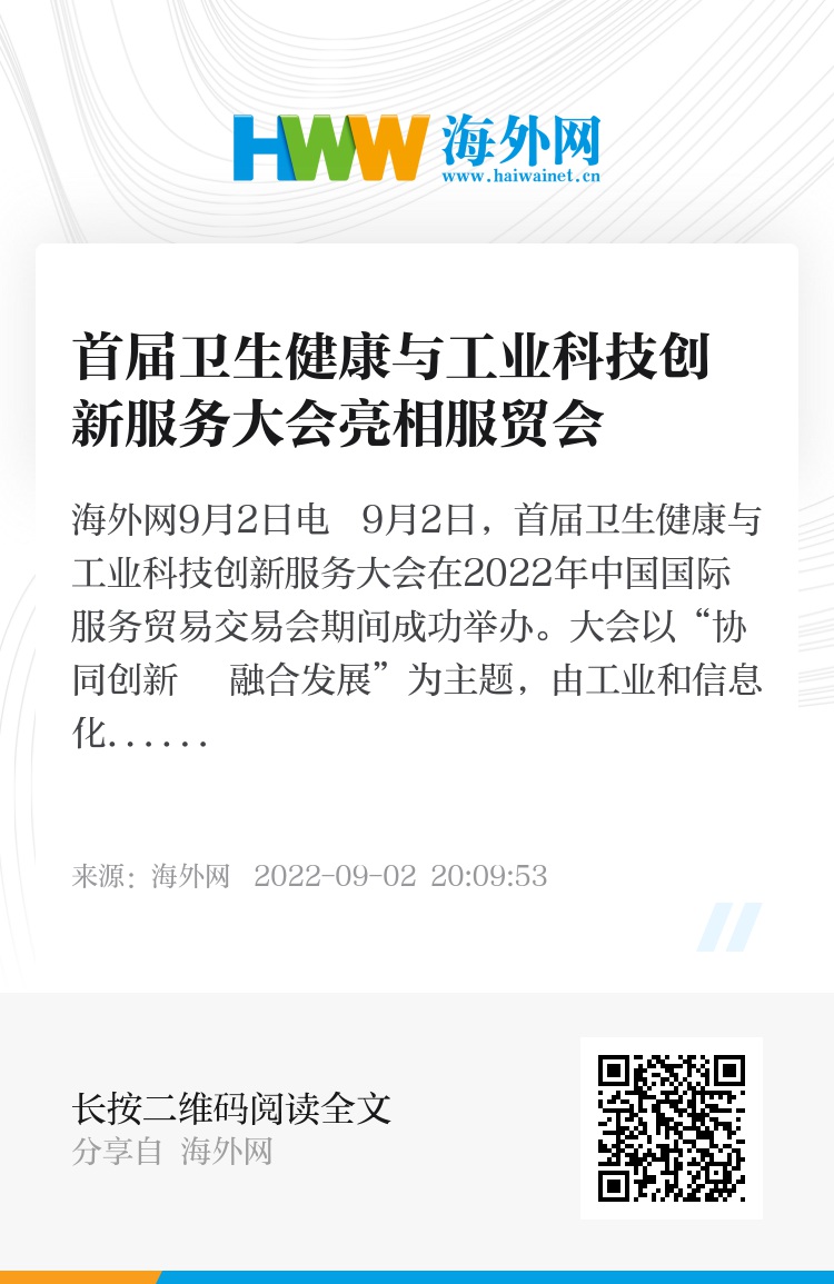 海外网9月2日电 9月2日,首届卫生健康与工业科技创新服务大会在2022年中国国际服务贸易交易会期间成功举办。大会以“协同创新 融合发展”为主题,由工业和信息化部、国家卫生健康委员会、北京市人民政府主办,工业和信息化部中小企业发展促进中心、国家卫生健康委医药卫生科技发展研究中心、北京市经济和信息化局、中国中小企业国际合作协会承办。国家卫生健康委员会副主任曾益新、工业和信息化部副部长王江平、国家卫生健康委员会副主任曾益新,北京市纪委书记陈健出席会议并致辞。中国工程院院士、广州医科大学附属第一医院国家呼吸系统疾病临床医学研究中心主任钟南山,中国工程院院士、中国疾病预防控制中心主任沈洪兵,中国工程院院士、北京大学国际癌症研究院院长詹启敏,中国工程院院士、中国医学科学院药物研究院院长蒋建东做作主题演讲。大会由工业和信息化部消费品工业司司长何亚琼主持。