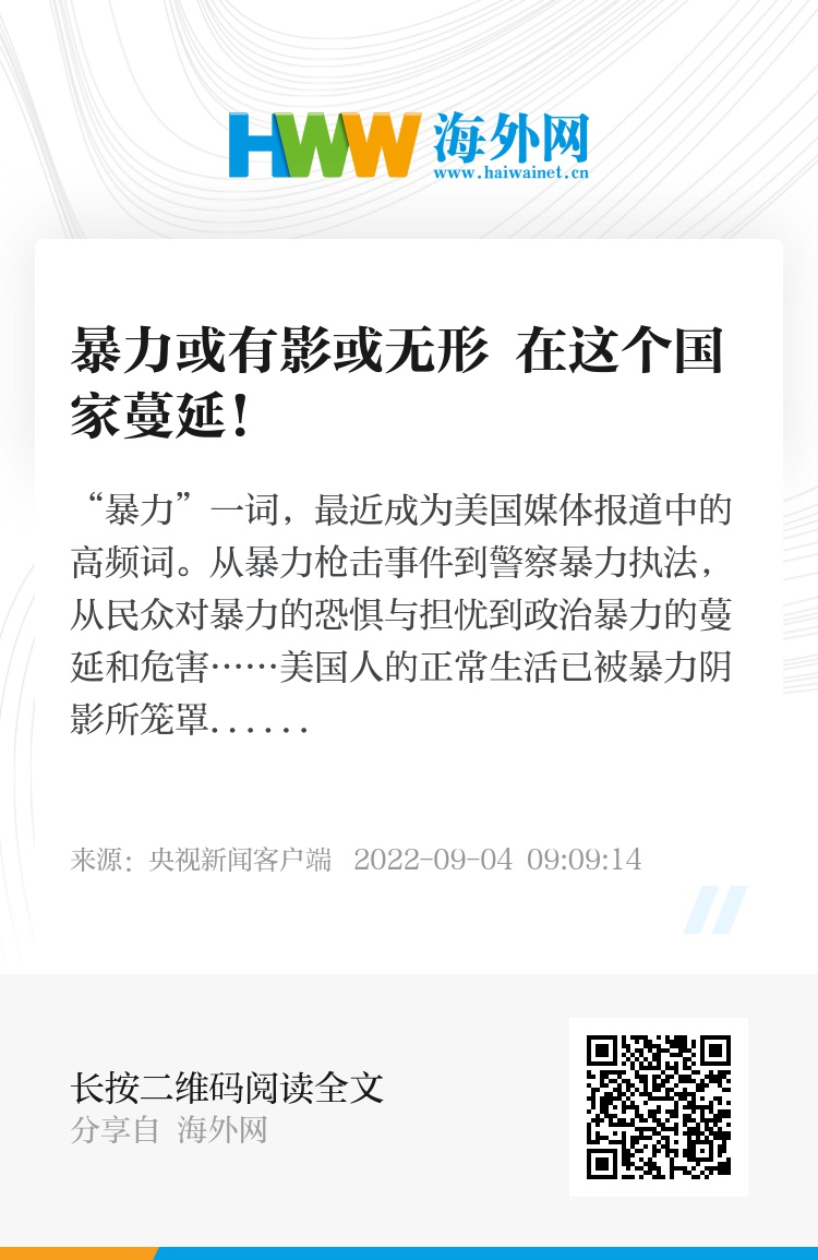 从暴力枪击事件到警察暴力执法,从民众对暴力的恐惧与担忧到政治暴力的蔓延和危害……美国人的正常生活已被暴力阴影所笼罩,少数族裔的担忧则更为让人心酸。