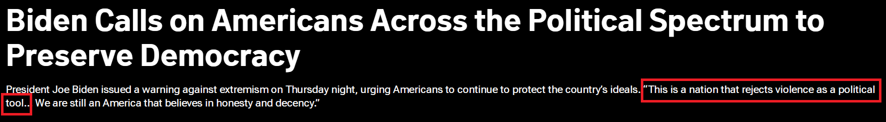 当地时间9月1日,美国总统拜登在费城发表演讲时,列举国会大厦骚乱事件等案例,试图说明极端主义为美国带来的危害,他呼吁美国人拒绝将暴力作为政治工具。