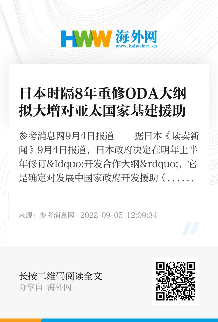 报道称,外务省着眼于大纲的修订,在2023年度预算申请中列入了大约1100亿日元作为ODA预算,这比2022年度增加了200亿日元。日本政府考虑将其用于对亚太地区国家的基础设施建设经费。