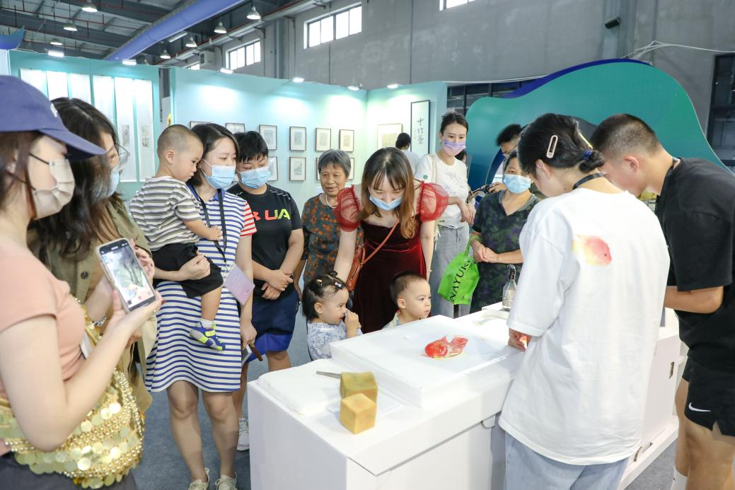 “每日有体验”是今年工艺周的一大特色。在各个展位,艺术家们每日开展与纸艺相关的体验活动,如亚运印章钤印、拓印体验,衍纸制作体验,古法造纸、活字印刷体验等。此外,本届工艺周还融合数字互动,特别推出鱼拓大师刘毅的珍藏版数字艺术品盲盒。