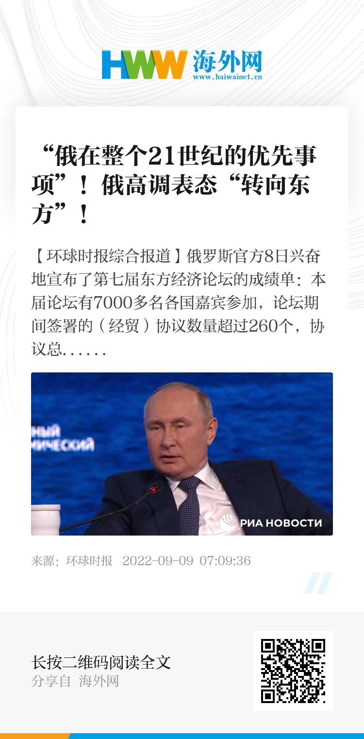 俄罗斯REN电视台8日称,本届东方经济论坛的成绩证明,尽管西方多次尝试,但其孤立俄罗斯却惨遭失败。俄“转向东方”为远东发展开辟了以前无法想象的前景。要建设真正的多极世界,与各国合作必须是平等和相互的。俄罗斯对此深有体会,因此俄罗斯“不会空手进入亚洲市场”。俄罗斯拥有丰富的资源和能源基础,可以为各国提供发展资源。俄与亚洲国家发展数字经济和信息技术的联合工作也已开始,利用本币进行相互出口结算正在增加。
