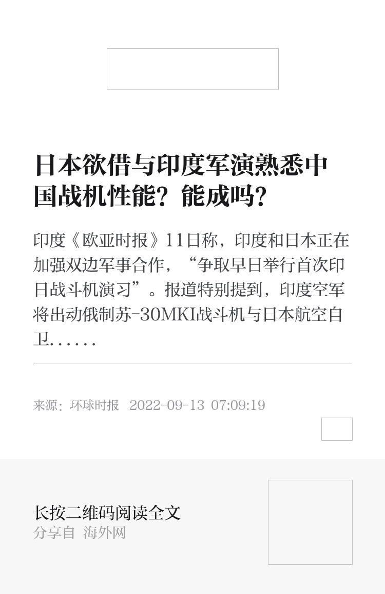 但该专家也强调说,日本与印度在防务合作上的持续走近值得警惕。《欧亚时报》称,2020年,日本和印度签署了《物资劳务相互提供协定》,允许两国武装力量共享后勤服务和物资,这意味着自卫队可以借助马六甲海峡附近的印度重要军事基地进行补给,印军也可以利用日本驻吉布提基地。(环球时报特约记者 陈山 环球时报记者 马俊)