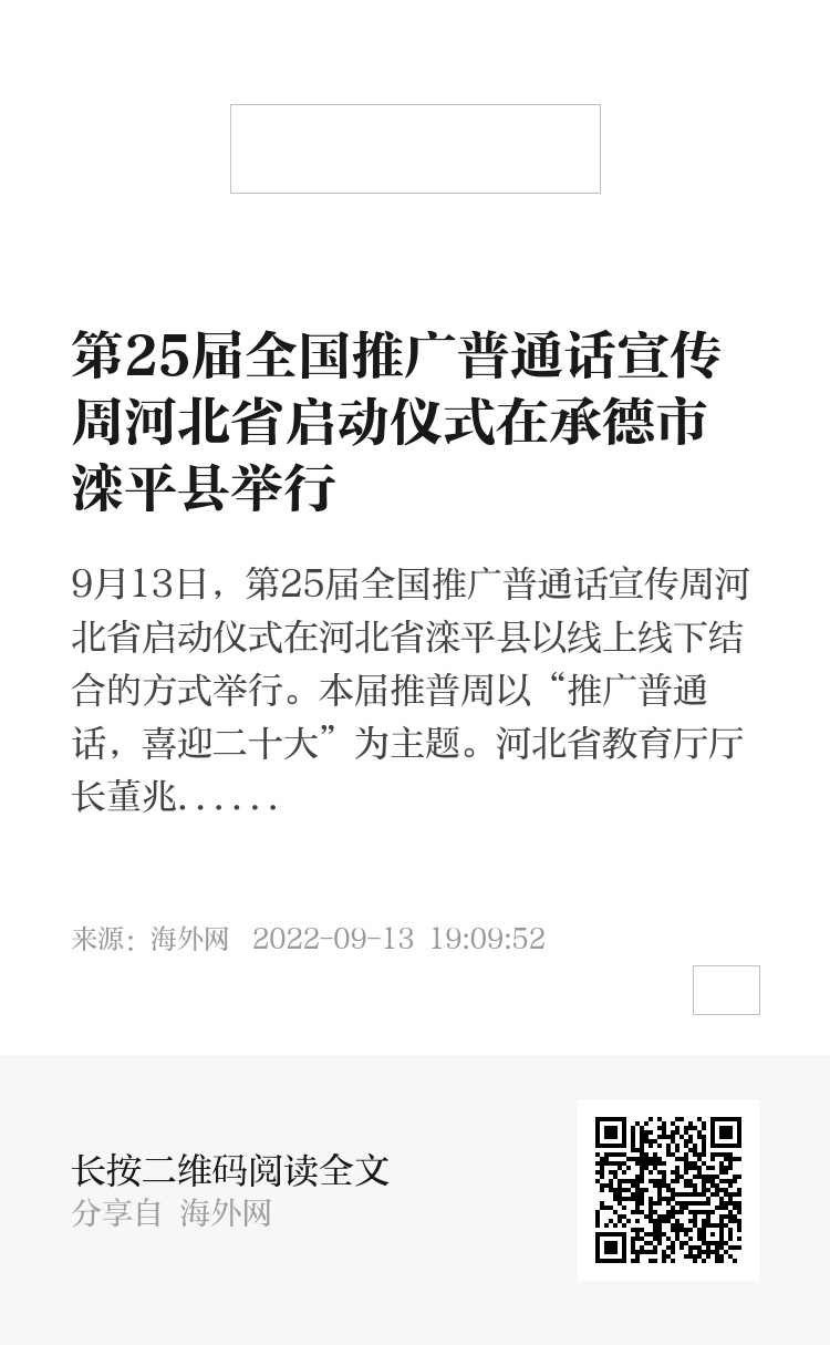 9月13日,第25届全国推广普通话宣传周河北省启动仪式在河北省滦平县以线上线下结合的方式举行。