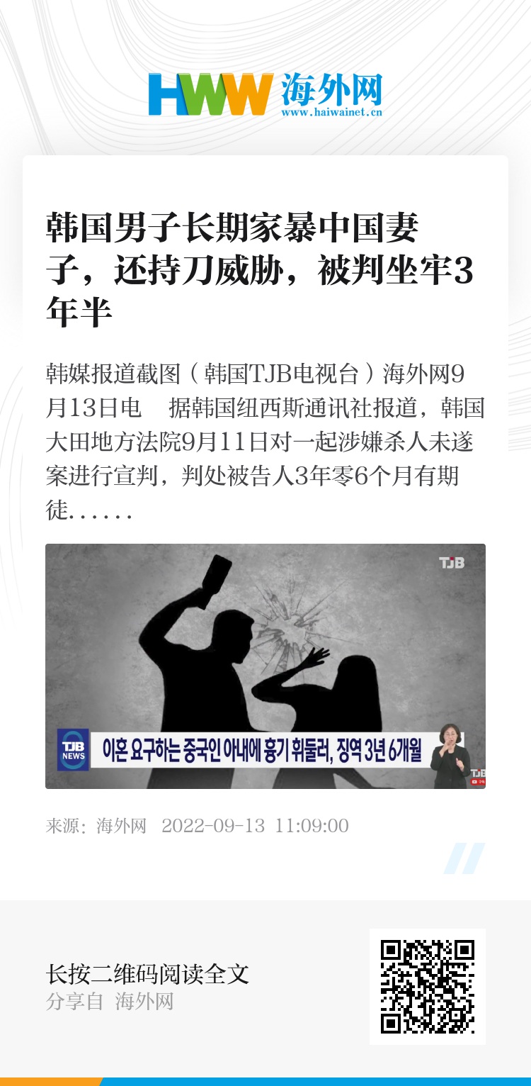 海外网9月13日电 据韩国纽西斯通讯社报道,韩国大田地方法院9月11日对一起涉嫌杀人未遂案进行宣判,判处被告人3年零6个月有期徒刑。