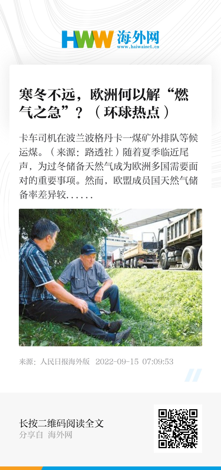 卡车司机在波兰波格丹卡一煤矿外排队等候运煤。(来源:路透社)