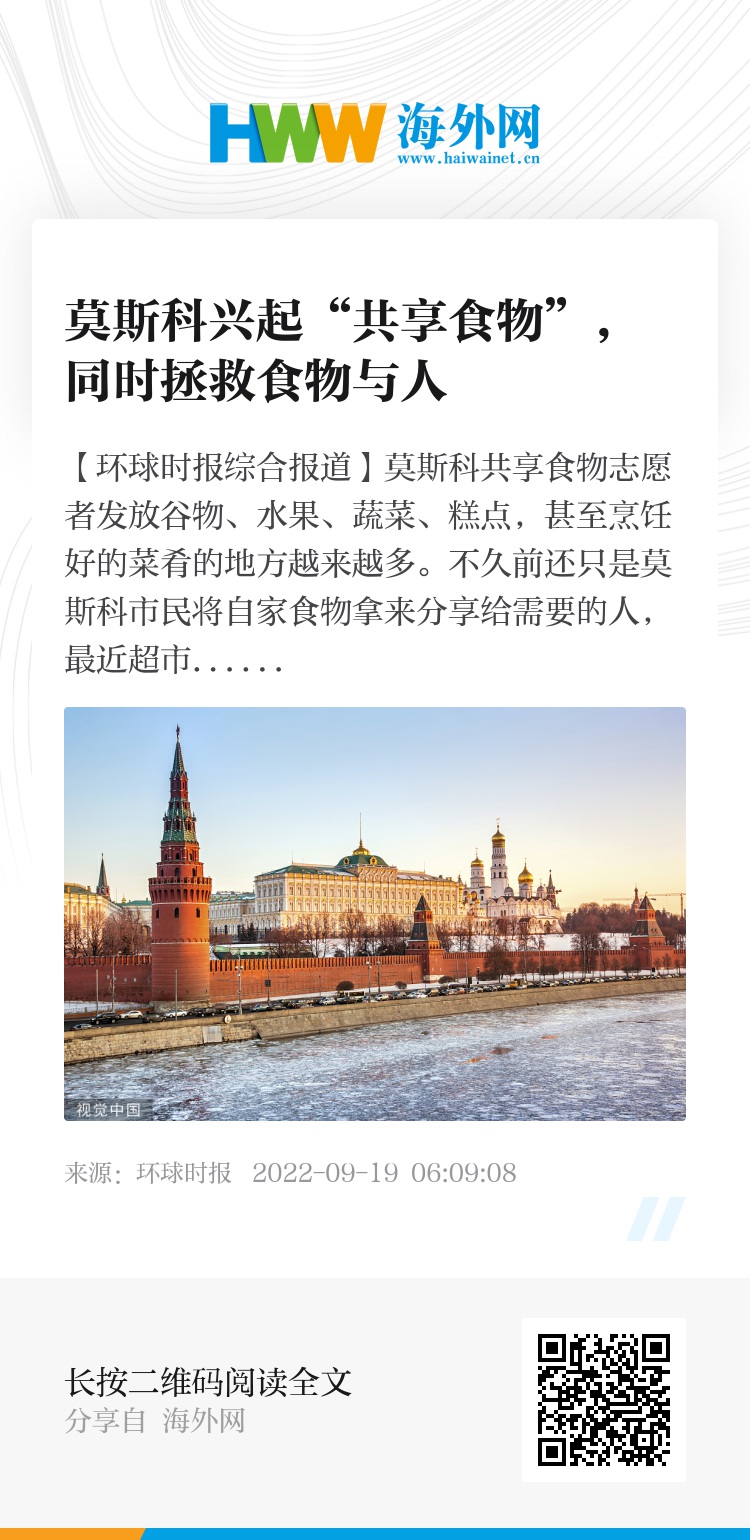【环球时报综合报道】莫斯科共享食物志愿者发放谷物、水果、蔬菜、糕点,甚至烹饪好的菜肴的地方越来越多。不久前还只是莫斯科市民将自家食物拿来分享给需要的人,最近超市也开始加入这一行动。