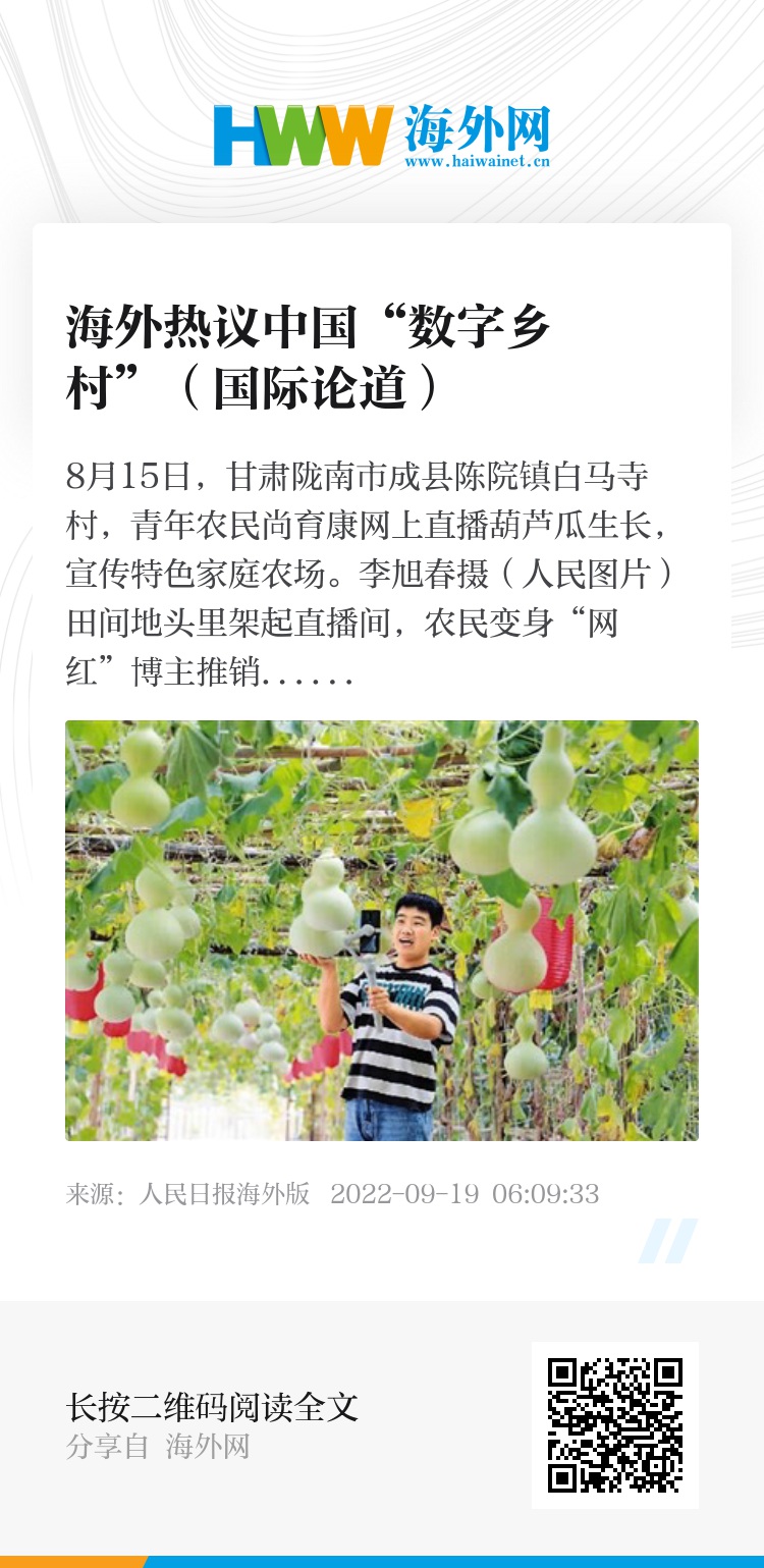 瑞士世界经济论坛网站指出,早在2020年初,中国政府就宣布国家“数字乡村”试点计划,这是中国迈向“数字中国”的重要努力。对世界缩小数字鸿沟而言,中国的“数字乡村”试点具有宝贵的参考意义。