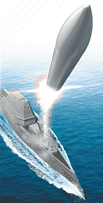 外形科幻的“朱姆沃尔特”级驱逐舰。