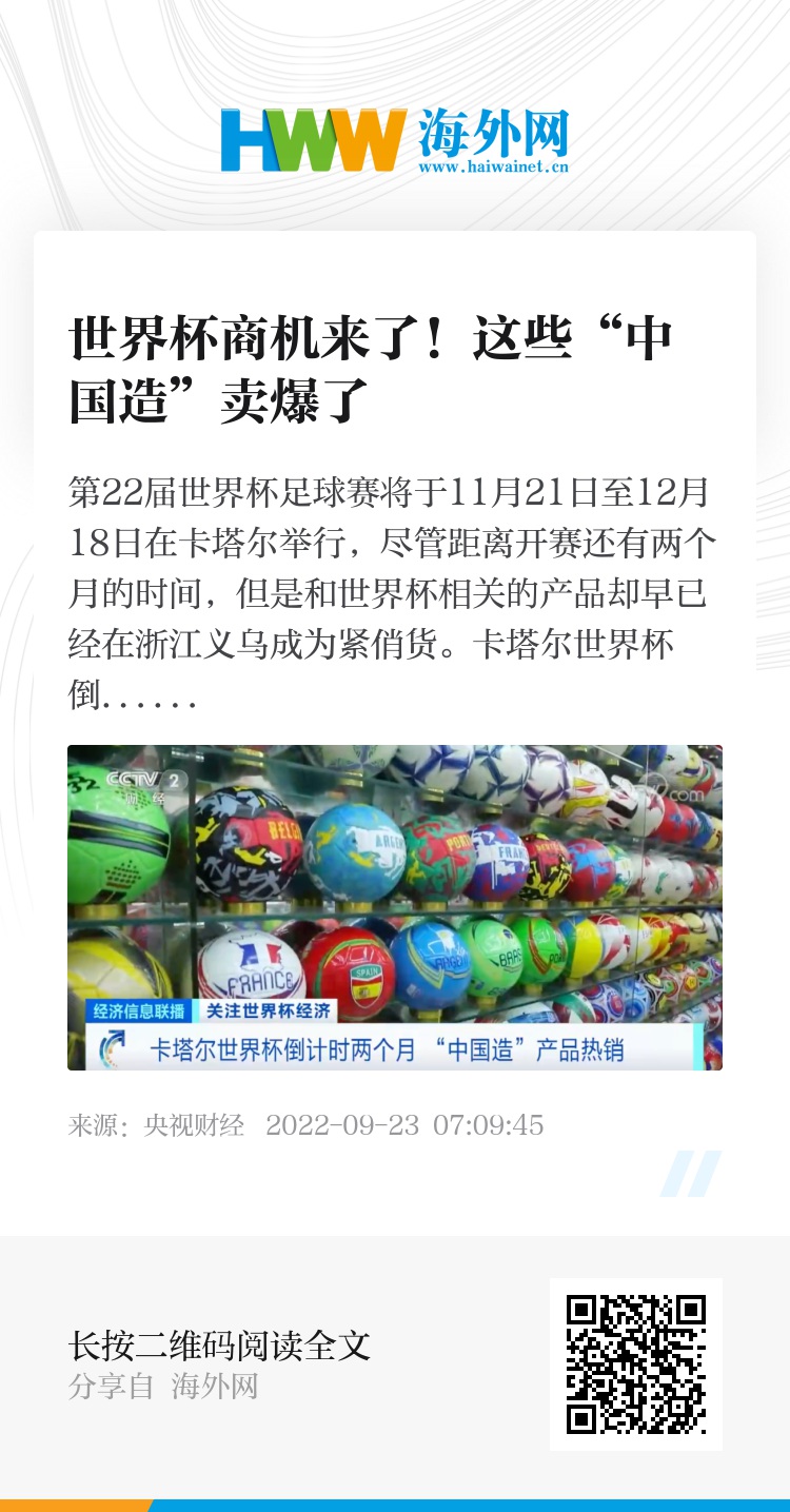 第22届世界杯足球赛将于11月21日至12月18日在卡塔尔举行,尽管距离开赛还有两个月的时间,但是和世界杯相关的产品却早已经在浙江义乌成为紧俏货。