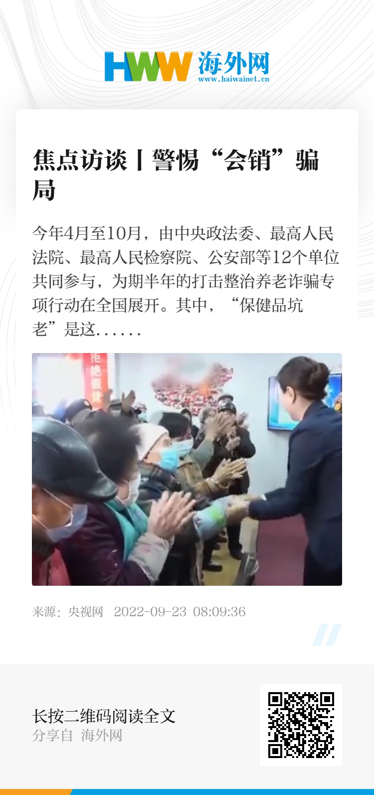 今年4月至10月,由中央政法委、最高人民法院、最高人民检察院、公安部等12个单位共同参与,为期半年的打击整治养老诈骗专项行动在全国展开。其中,“保健品坑老”是这次专项行动重点打击的一种犯罪。到目前为止,全国打击整治养老诈骗专项行动办公室挂牌督办了19起重特大保健品诈骗案件,打掉了一批跨区域职业犯罪团伙。在这些诈骗案件中,有个特殊角色就是“会销讲师”,这些人穿梭在全国各地会销现场,通过套路给老人们“洗脑”,大肆进行欺诈蛊惑,是“保健品坑老”犯罪的重要推手。