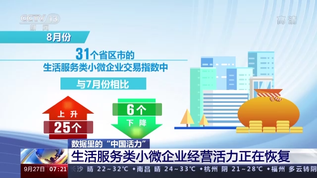 分地区看,8月份31个省区市的生活服务类小微企业交易指数中,与7月份相比,有25个上升、6个下降,而降幅较大的地区主要受疫情影响。同比看,31个省份的交易指数中,有26个上升。