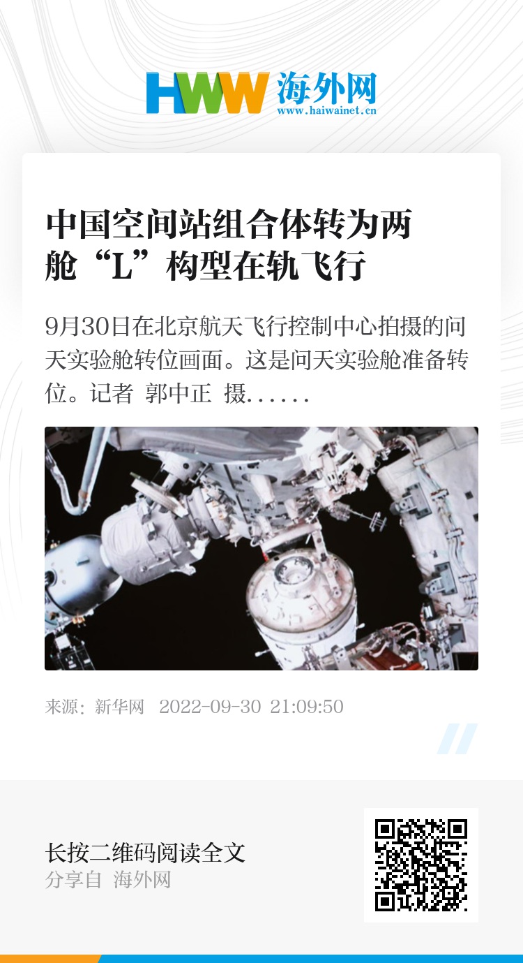 32492906,.中国空间站组合体转为两舱“L”构型在轨飞行,.2022-09-30 21:33:50,.204524,.庄鹏泽