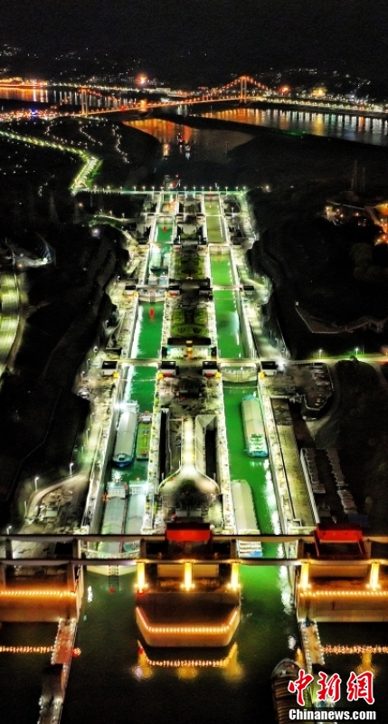 三峡南线船闸完成检修任务后恢复通航,实现双向通行。两坝船闸30项机、电、水主体工程项目均提前完成,且满足安全、质量、进度和环保要求。中新社发 周星亮 摄