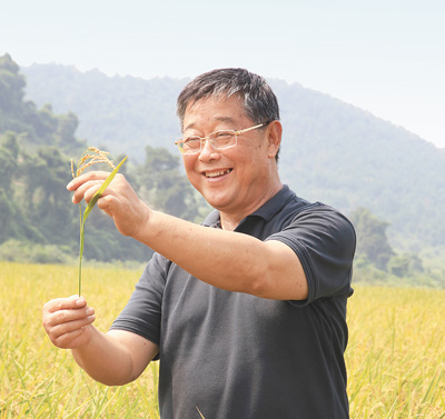 赵亚夫在察看水稻长势。庄润贵摄(人民视觉)