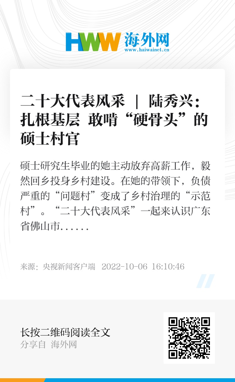 “二十大代表风采”一起来认识广东省佛山市古灶村党委书记、村委会主任陆秀兴。