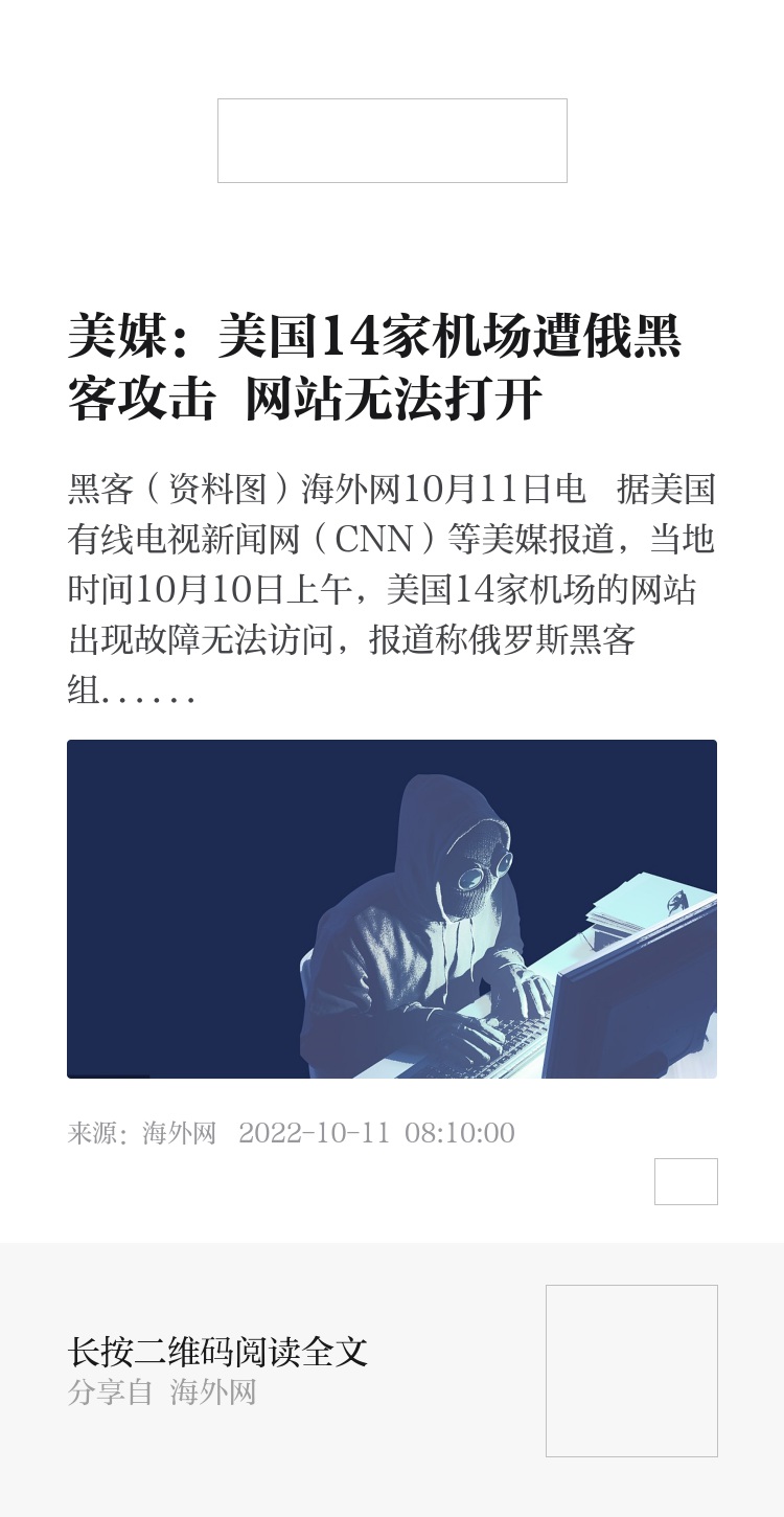 海外网10月11日电 据美国有线电视新闻网(CNN)等美媒报道,当地时间10月10日上午,美国14家机场的网站出现故障无法访问,报道称俄罗斯黑客组织Killnet宣布对此负责。