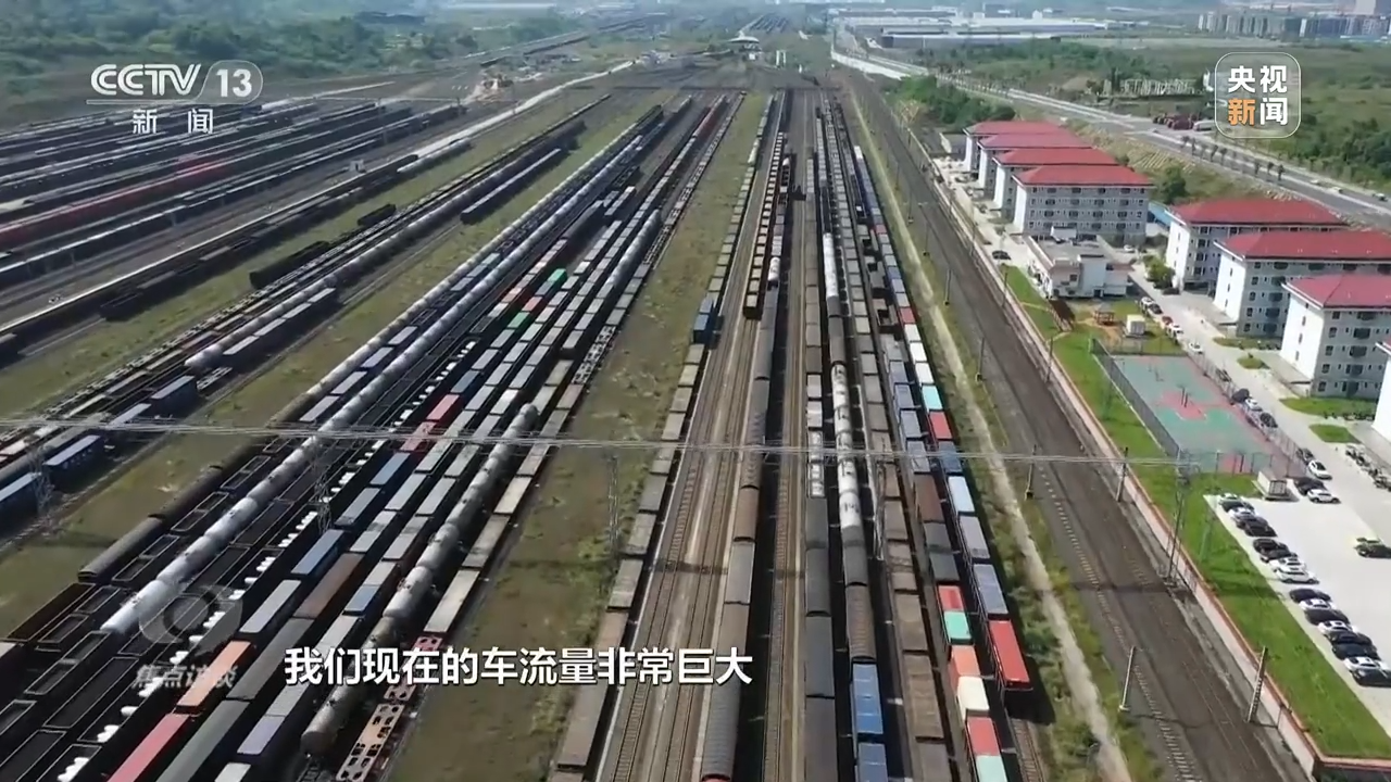 郑雷珏是重庆团结村车站值班员,以前这个站只是一个小站,一个月就那么几趟列车,货物也非常单一,主要就是汽车零配件。但是,中欧班列开通十年以来,现在的车流量非常巨大,车站的龙门吊采用三班倒的方式进行作业。