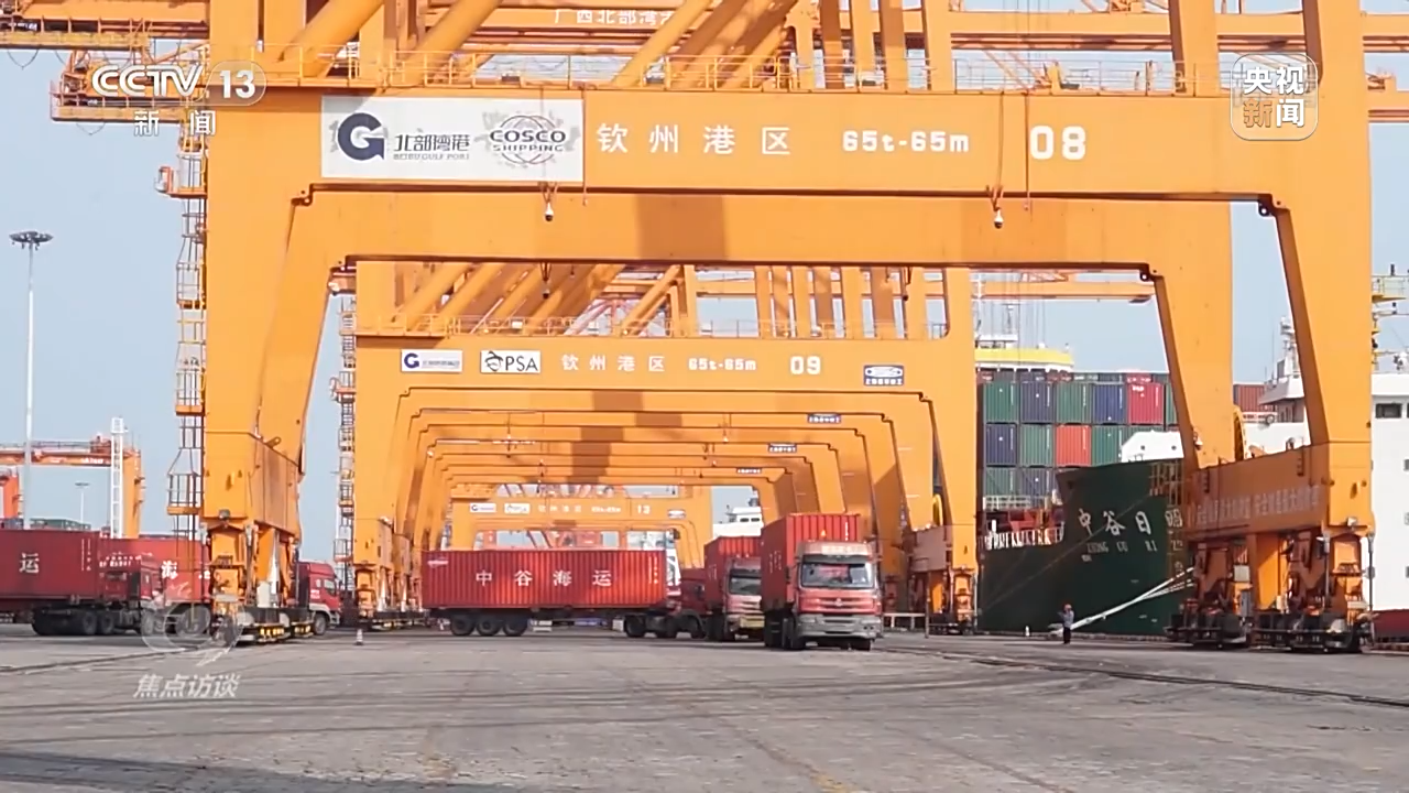 5年前,一条全新的国际陆海贸易大通道的诞生,更是让不沿边不靠海的内陆城市迎来了全新的开放机遇。在重庆两江新区工业园区的一家汽车工厂里,一辆辆崭新的汽车完成组装,驶出生产线,几天后,它们将通过陆海新通道,运往广西的钦州港,在那里装船,销往东盟市场。
