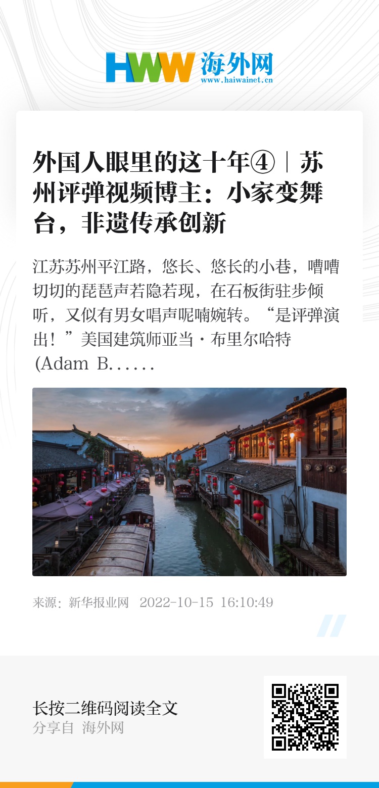 小家改造成录音棚,在家如在舞台,听众五湖四海,传承非遗文化与享受家庭生活兼顾,这是从前未曾设想过的便捷与平衡。“只有让更多的人了解评弹这门非遗文化,才能让更多人对评弹文化产生兴趣,”小刘说,“这样我们才能最大限度保护非遗、传承非遗、创新发展非遗。”从小刘家阳台望出去,亚当感受到小区改建工程施工一片热火朝天,眼前的评弹表演更显生机无限。